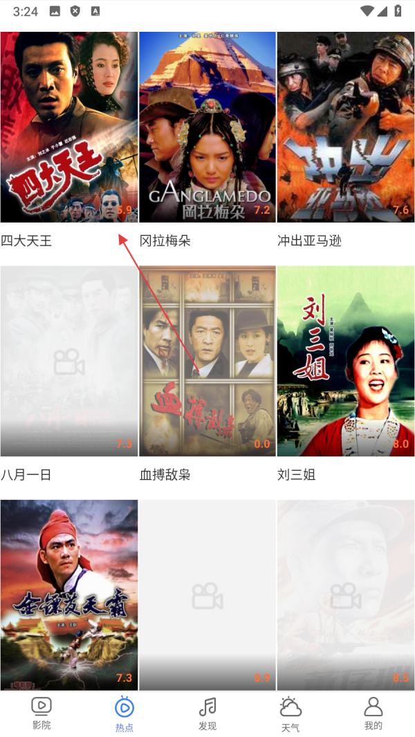 2、在热点影视页面,选择【心仪的影视】,进入影视详情页面。