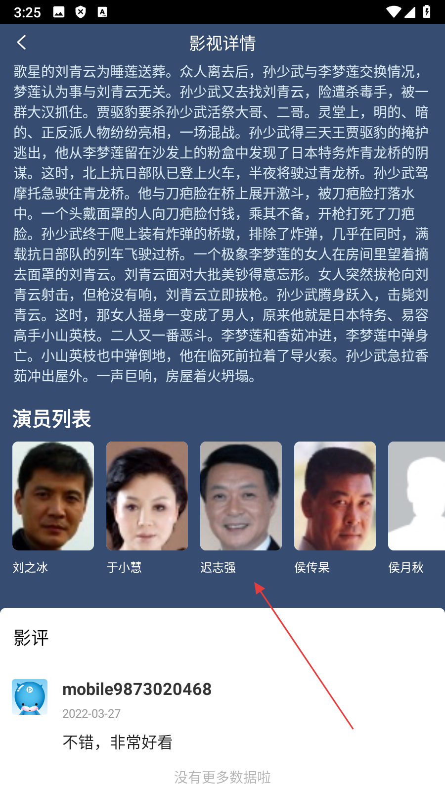 4、来到页面下方,继续浏览即可查看【演员信息】与影评,深入了解影视信息。