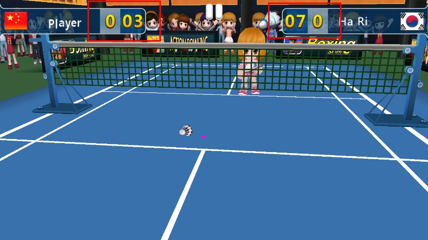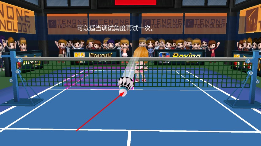 2、比赛里,根据提示调试角度,回击对手打来的羽毛球,与对手进行回合较量。