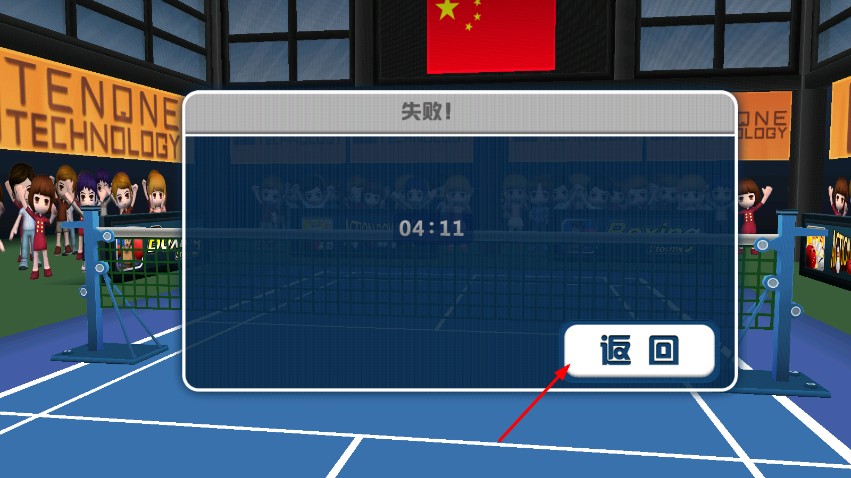 4、若比赛失败,可点击“返回”按钮,回到主界面,重新开始游戏。
