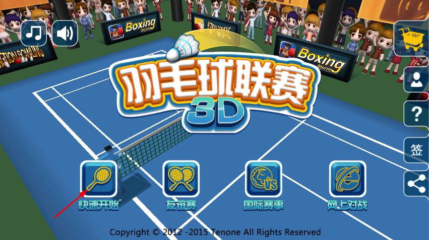 1、在游戏主界面,点击“快速开始”按钮,进入羽毛球3d联赛。