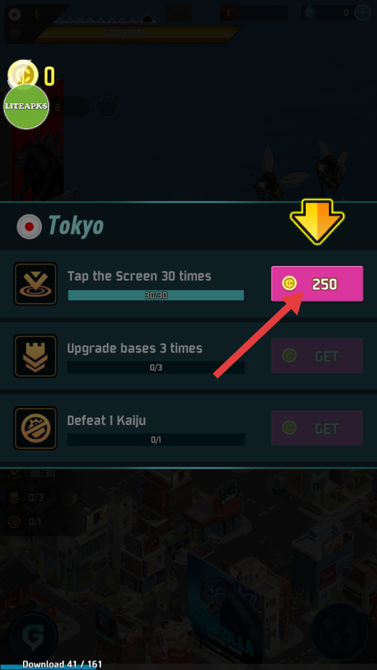 3、完成点击屏幕30次的任务后,领取【250】金币奖励。