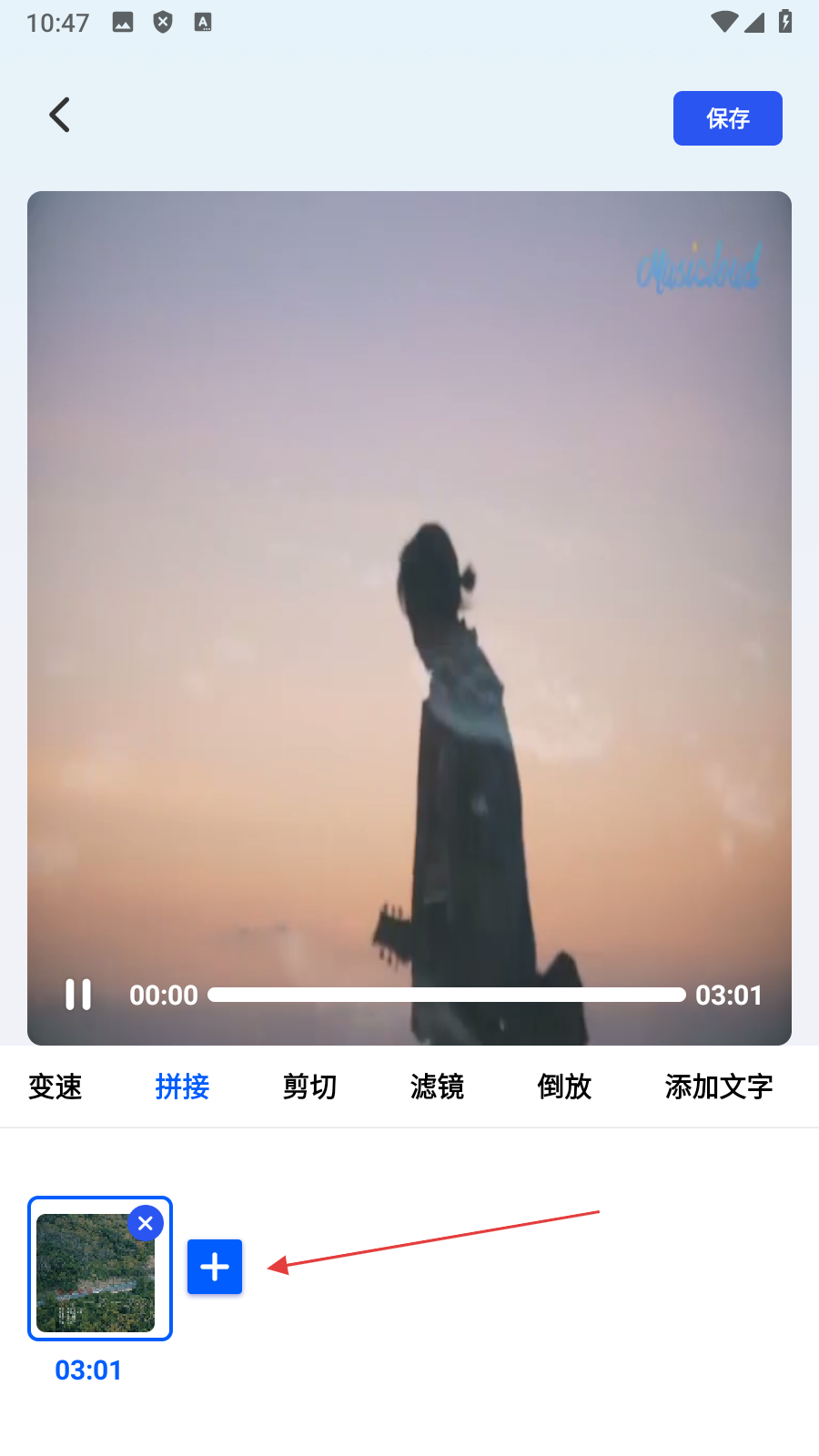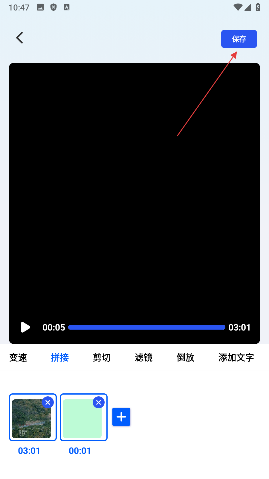 4、添加视频后点击【保存】,即可完成视频拼接操作。