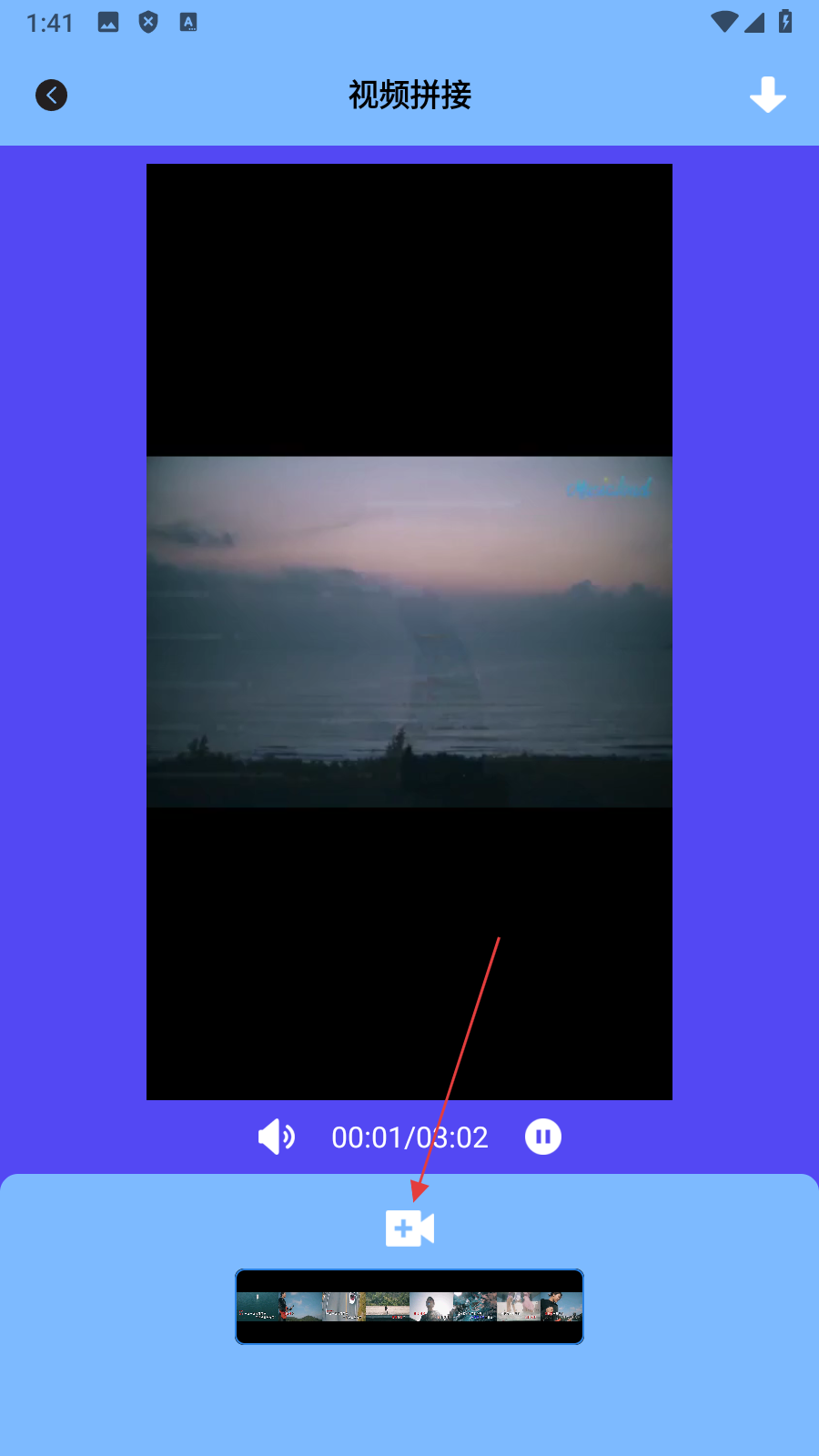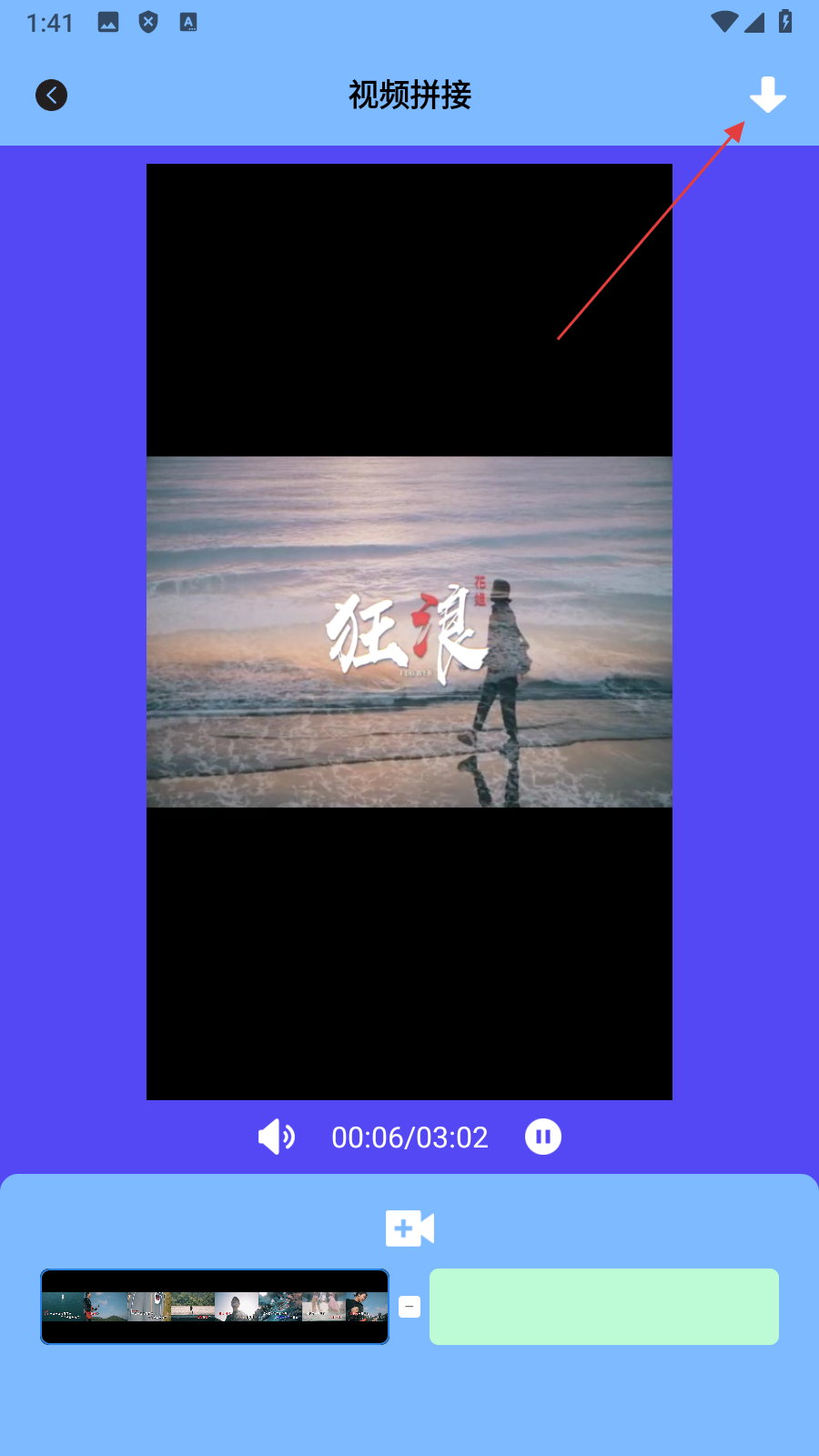 4、拼接完成后点击【右上角下载图标】,即可完成视频拼接操作。