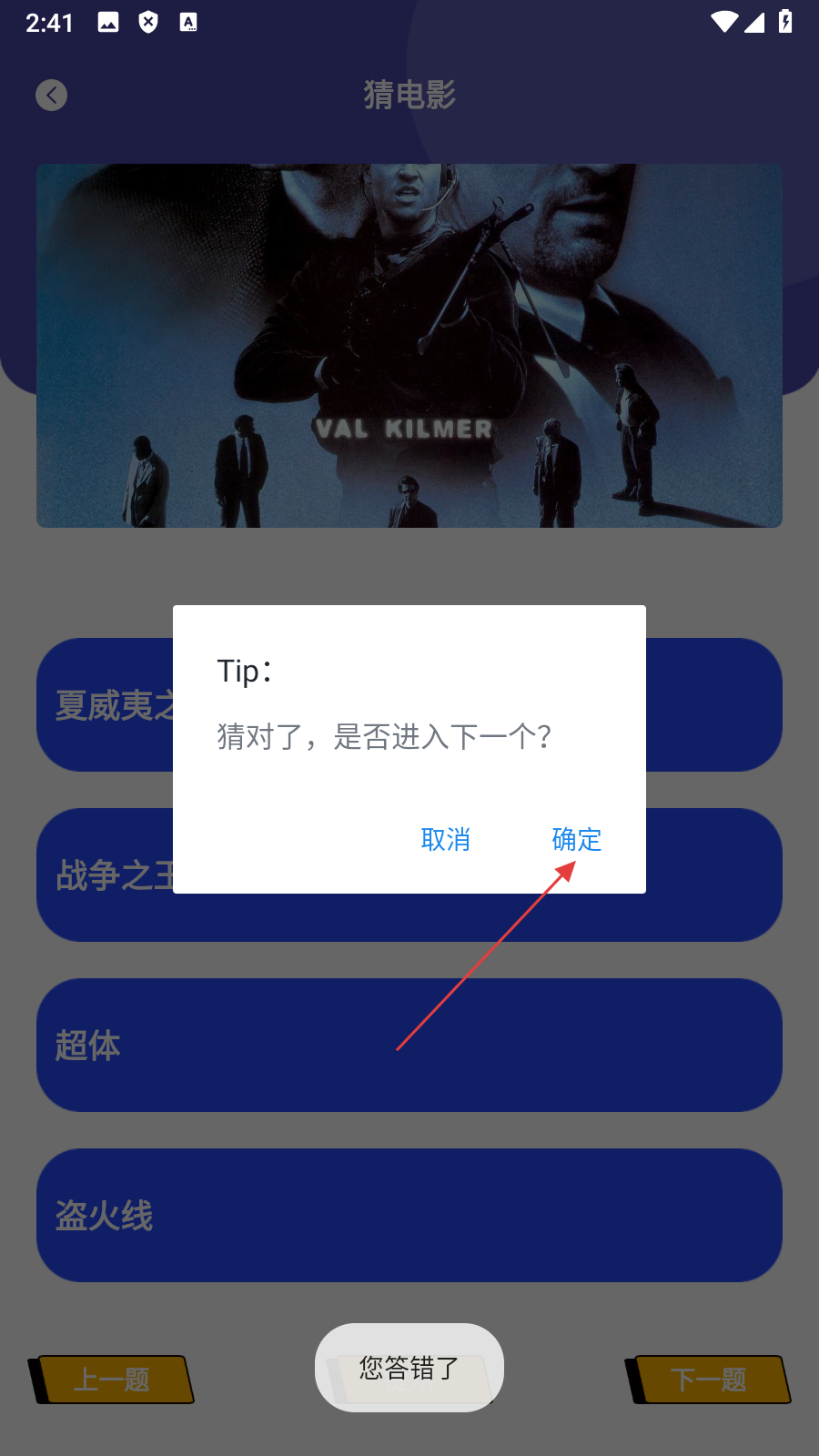 4、猜对后点击【确定】,即可进入下一题继续影视猜剧操作。