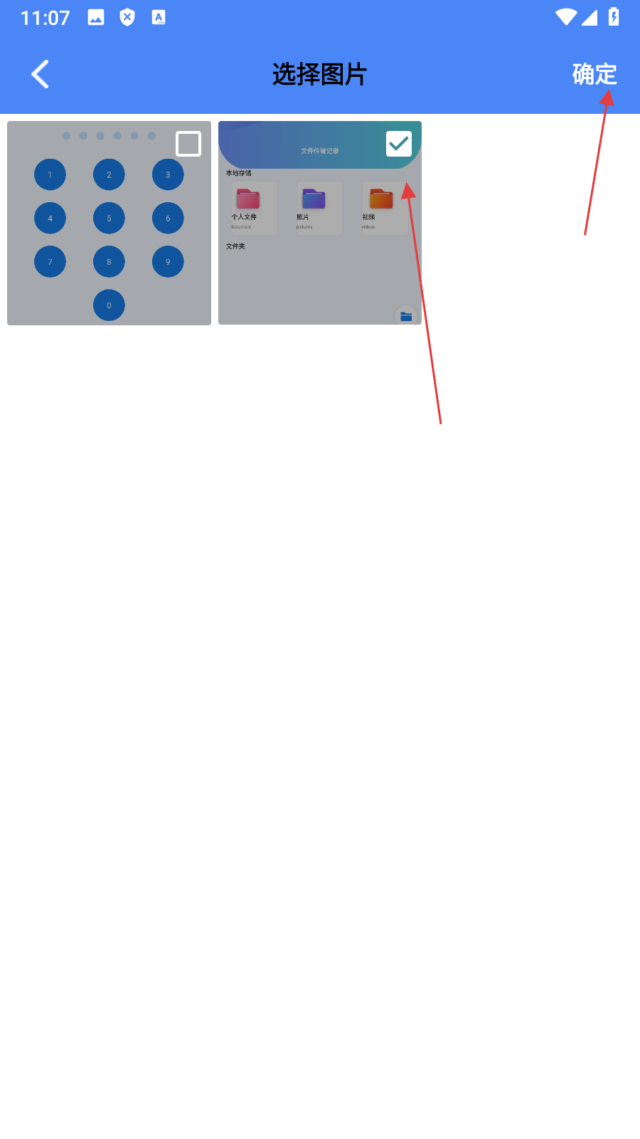 4、在选择图片页面【选择图片】后点击【确定】,即可将照片加入私密相册。