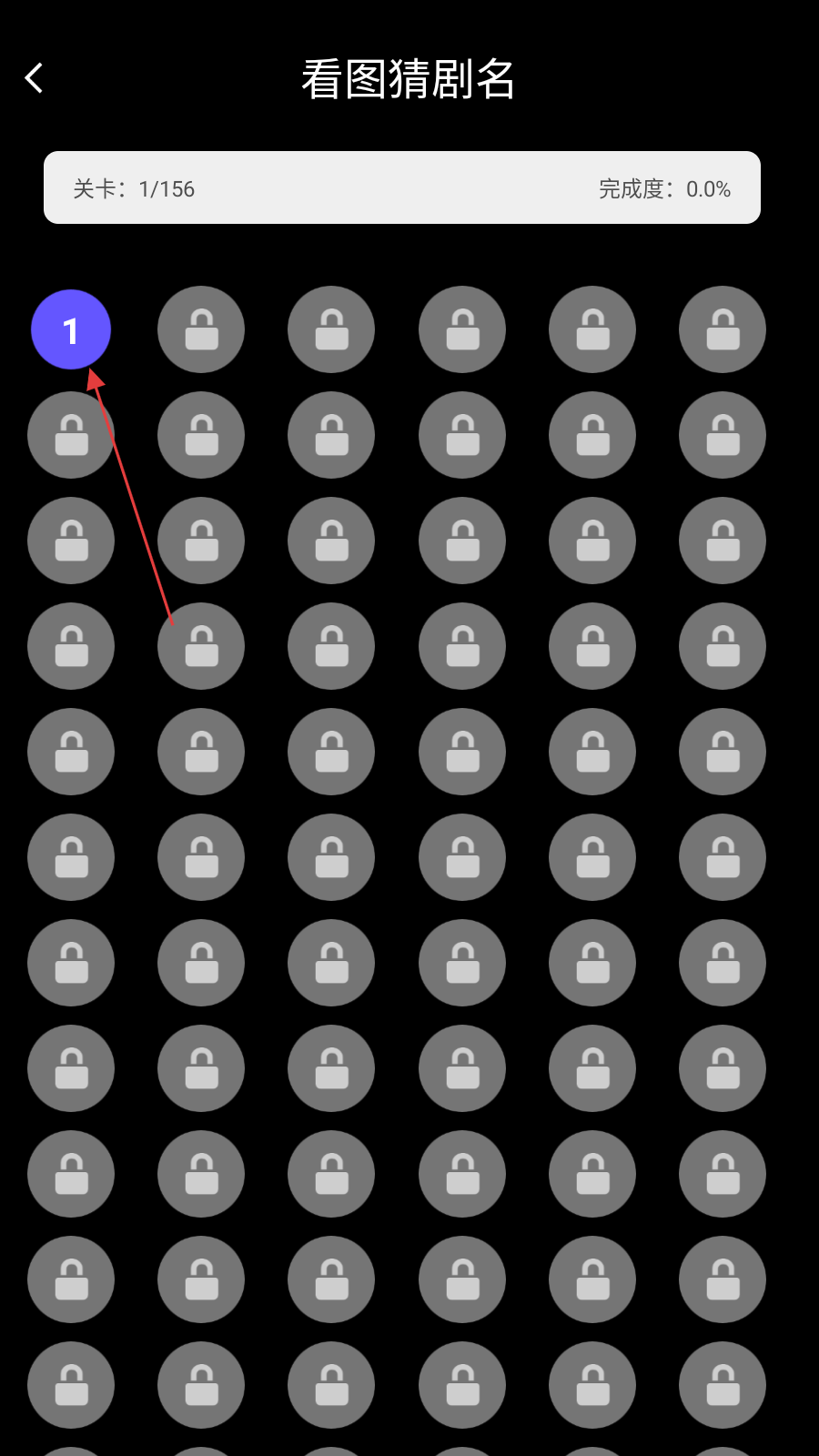 3、在看图猜剧名关卡页面点击【第1关】,进入第1关答题页面。