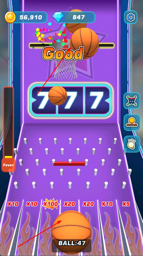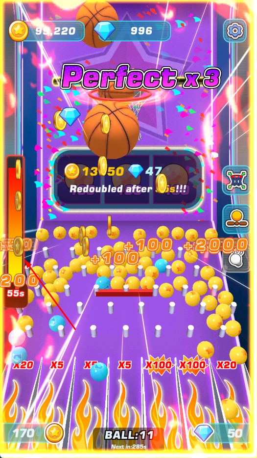 2、连续成功投篮,可触发“Perfect”增益效果,获得更多奖励。