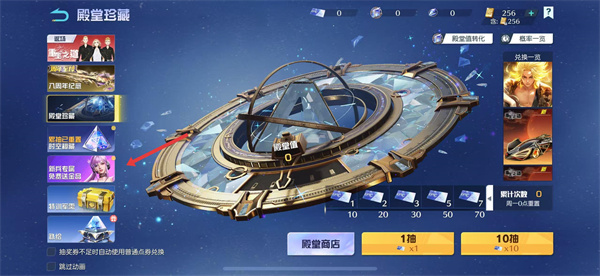 3、根据自身资源点击【1抽】或【10抽】按钮,进行抽奖。