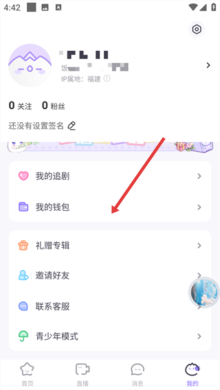 2、在个人中心页面,点击【我的钱包】选项,进入钱包界面。