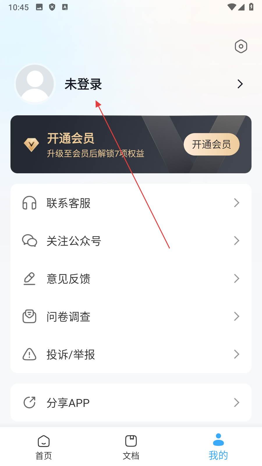2、在个人中心页面点击【未登录】,进入登录页面。