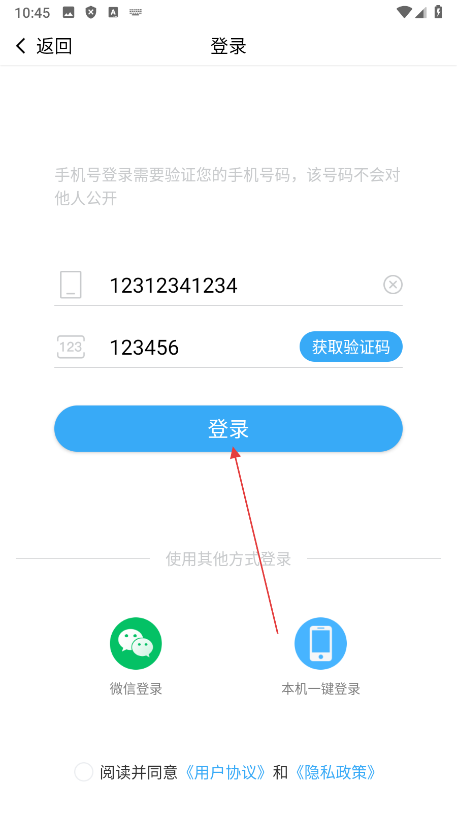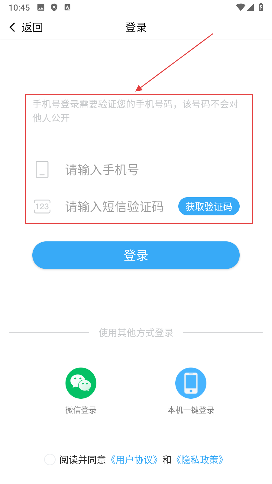 3、在登录页面输入【手机号和短信验证码】,准备登录。
