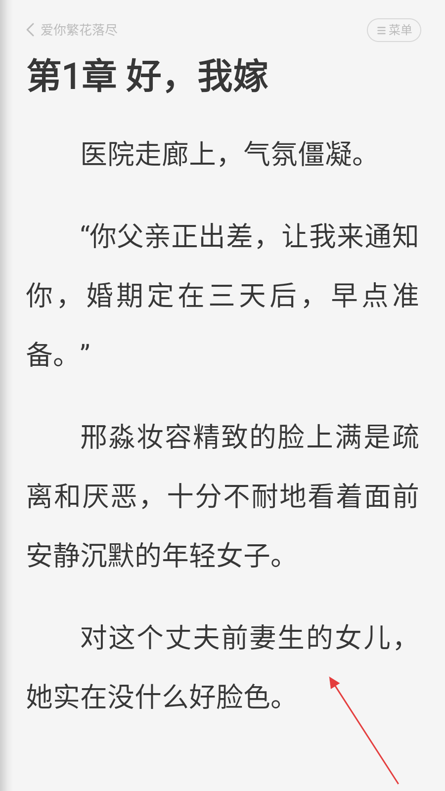 3、在现代言情小说列表页面,点击【目标小说】,进入小说阅读页面。