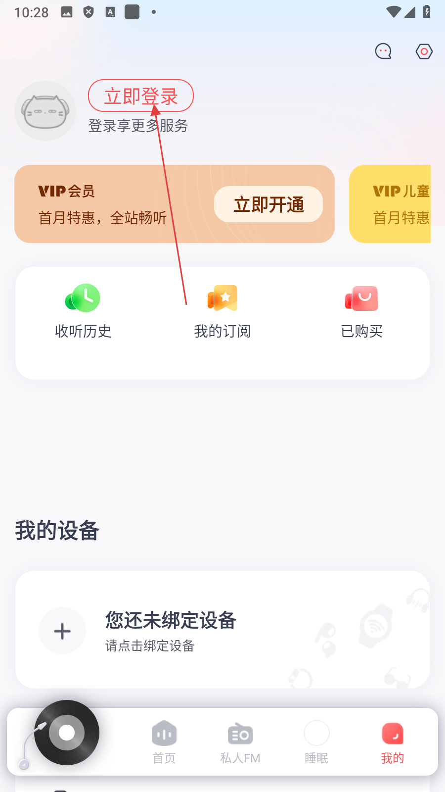 2、在个人中心页面,点击【立即登录】,进入登录页面。