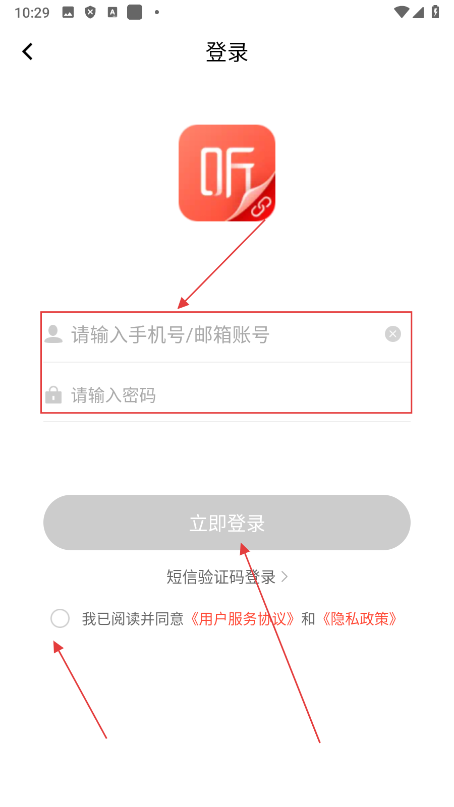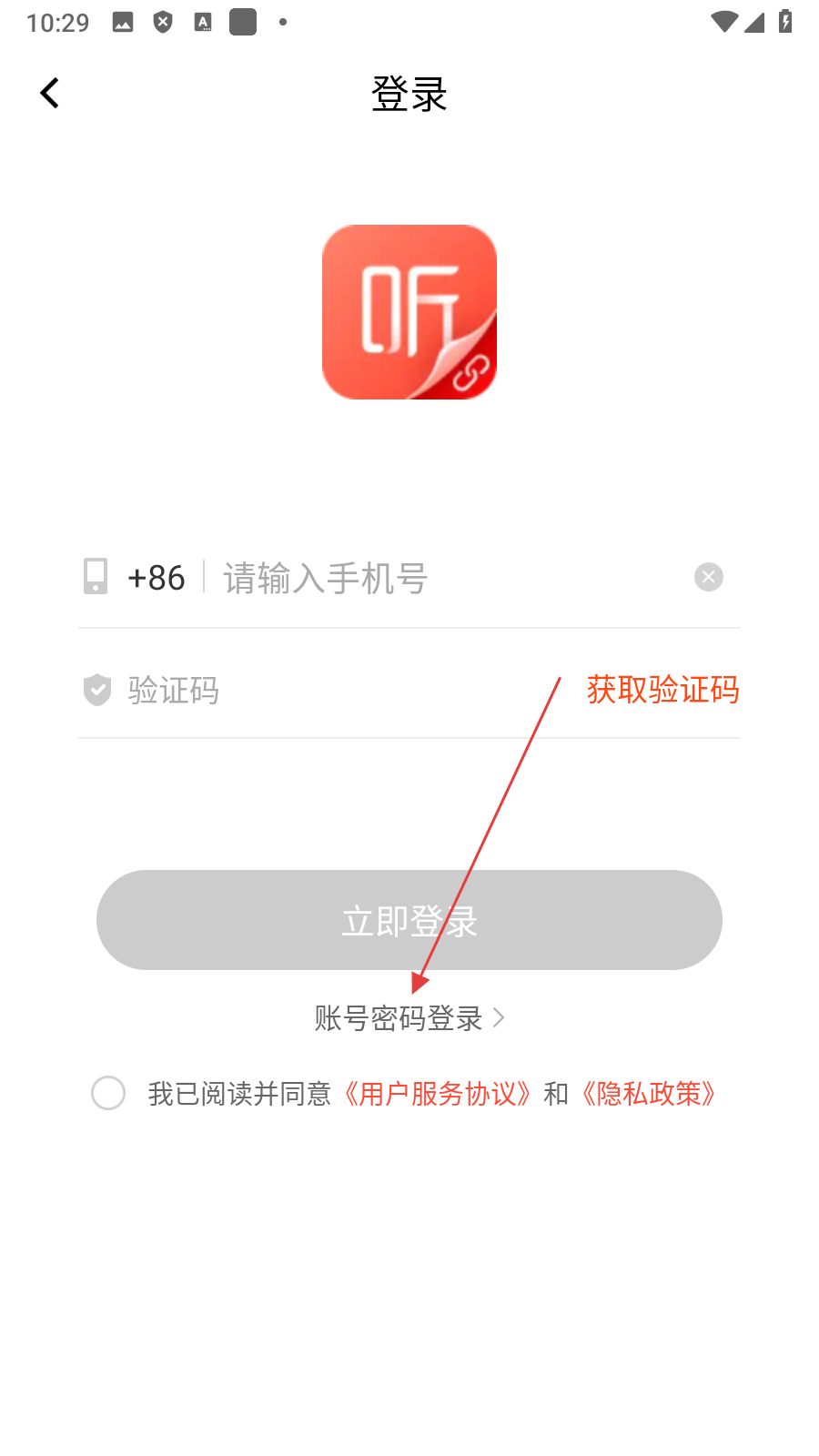 4、在账号密码登录界面【输入账号、密码并勾选协议】后点击【立即登录】,即可完成登录操作。