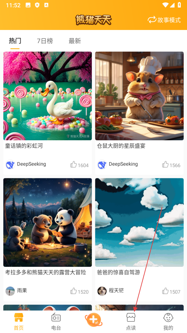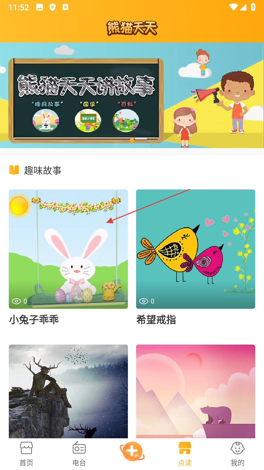 2、在点读页面,点击【喜欢的故事封面】,进入故事阅读页面。