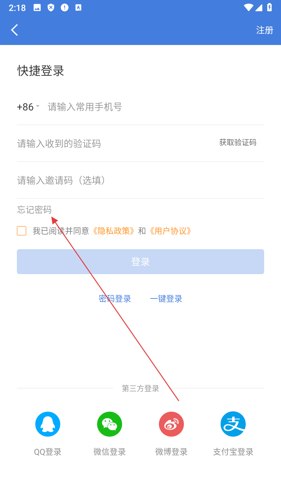 3、在登录页面,点击【忘记密码】,进入忘记密码页面。