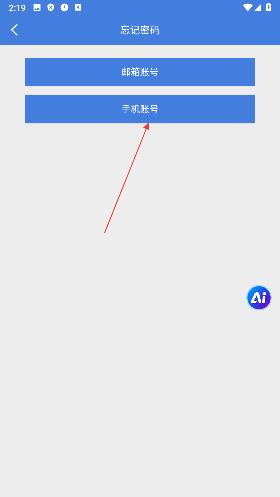 4、在忘记密码页面,点击【手机账号】,即可进行手机号密码找回操作。