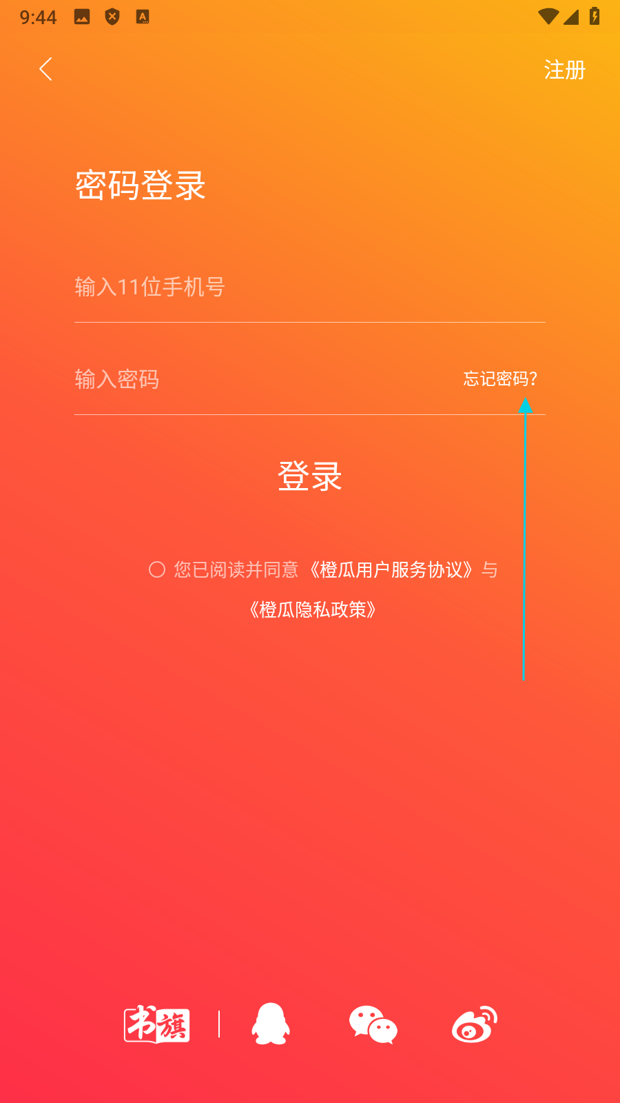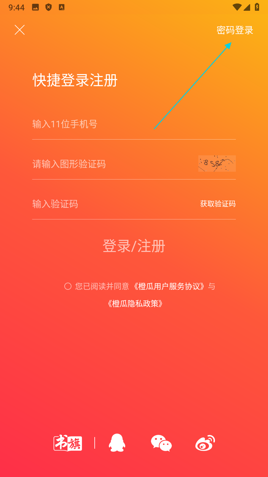1、点击右上角【密码登录】,进入密码登录页面。