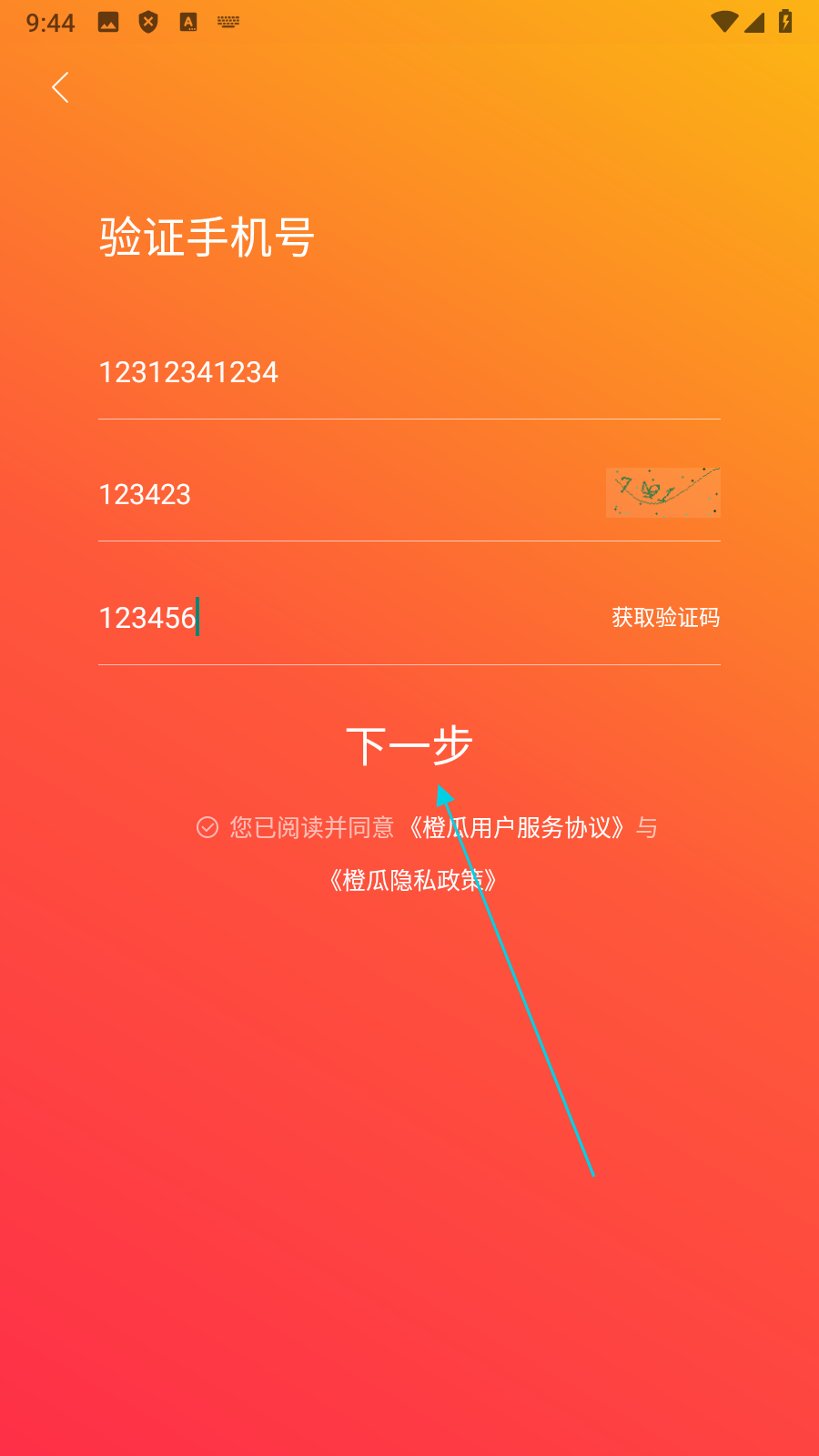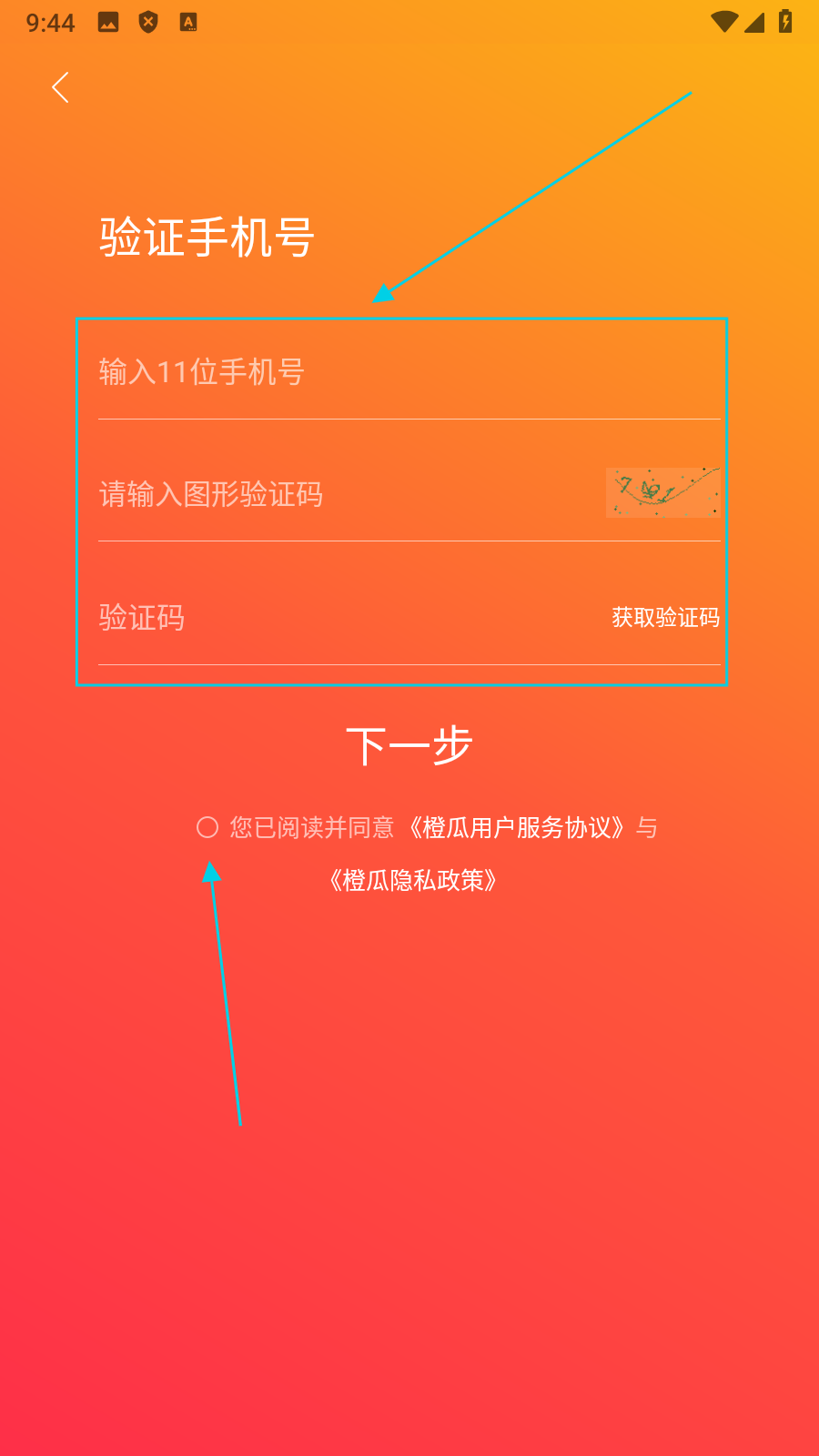 3、在验证手机号页面,输入【信息】并勾选【同意协议】,准备验证。
