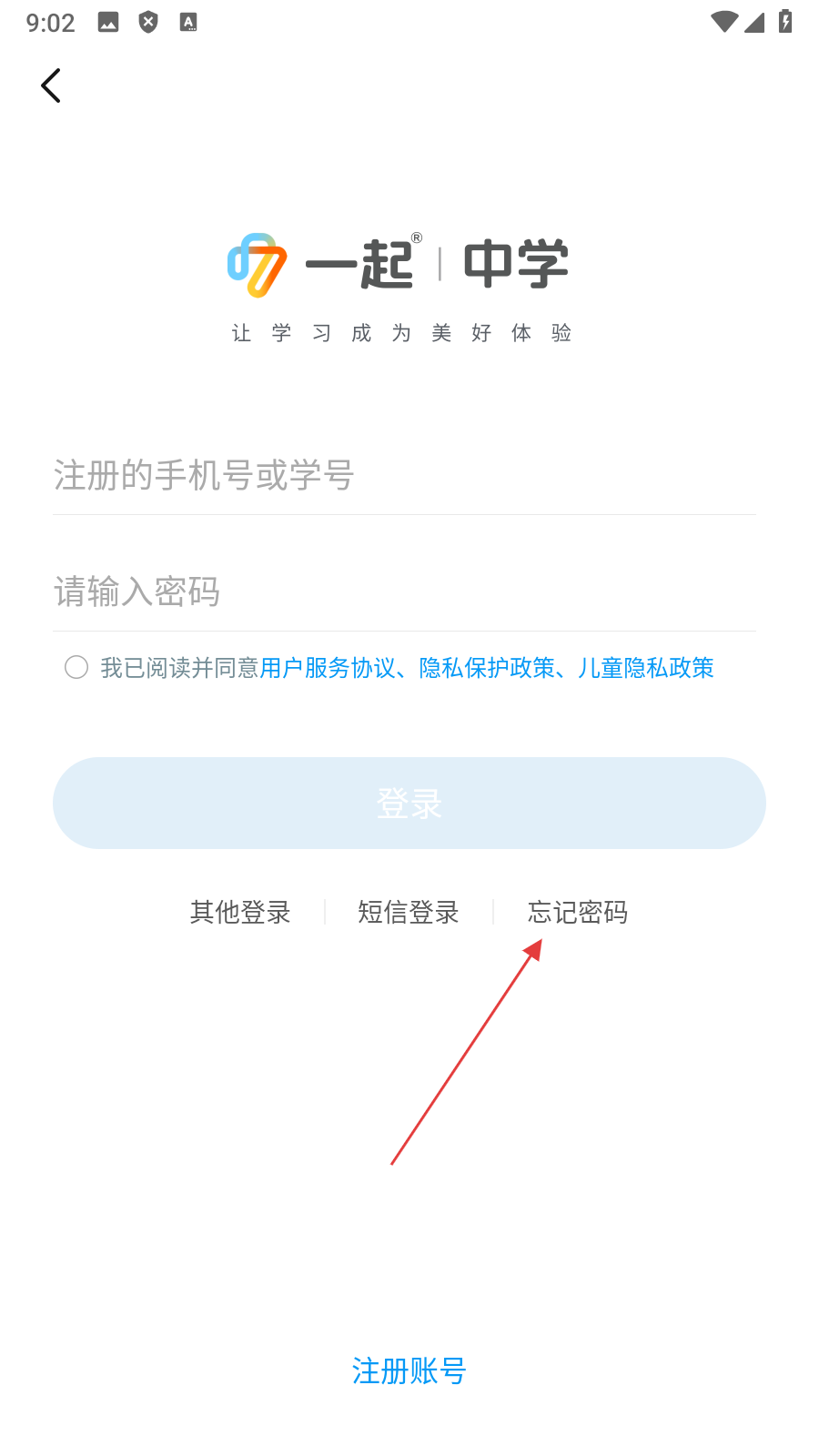 2、在账号登录页面点击【忘记密码】,进入找回密码页面。
