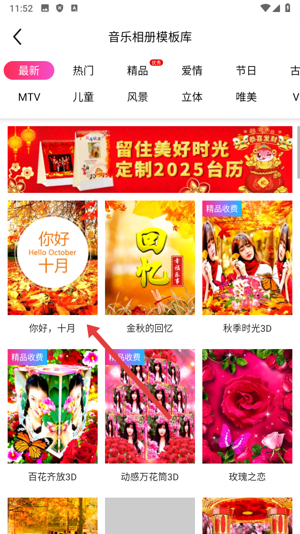 3、在音乐相册模板库页面【选择目标模板】,进入模板详情页面。
