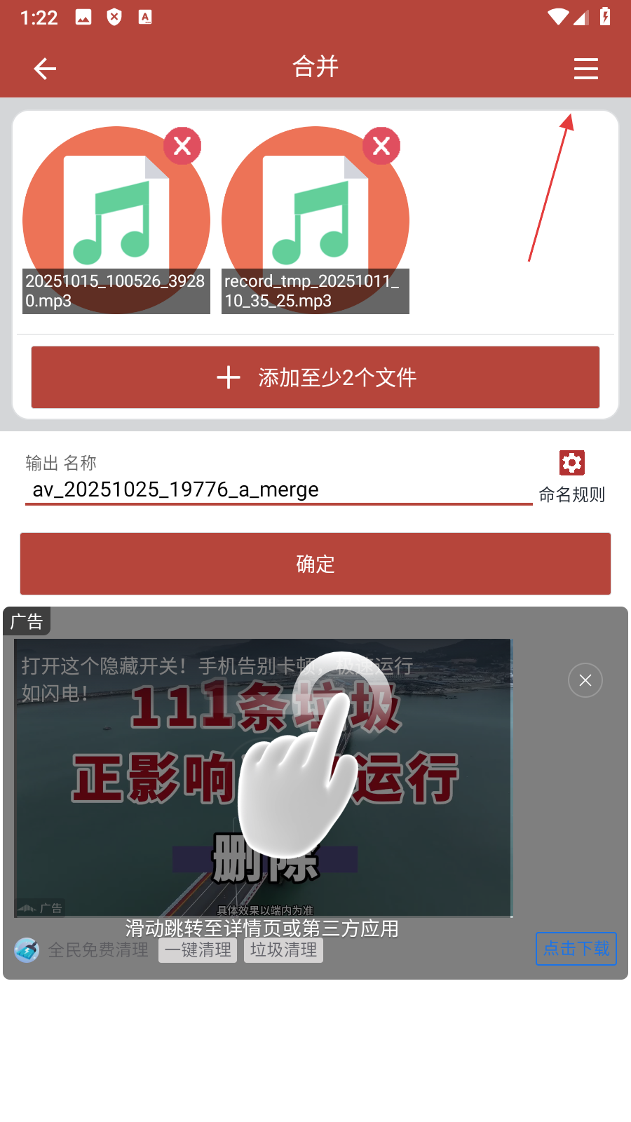 2、在音频选择页面【选择目标音频】后点击【确定】,进入音频合并设置页面。