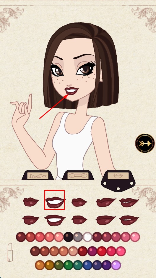 2、在唇部装扮区,选喜欢的唇形和唇色,点击为角色更换唇部妆容。