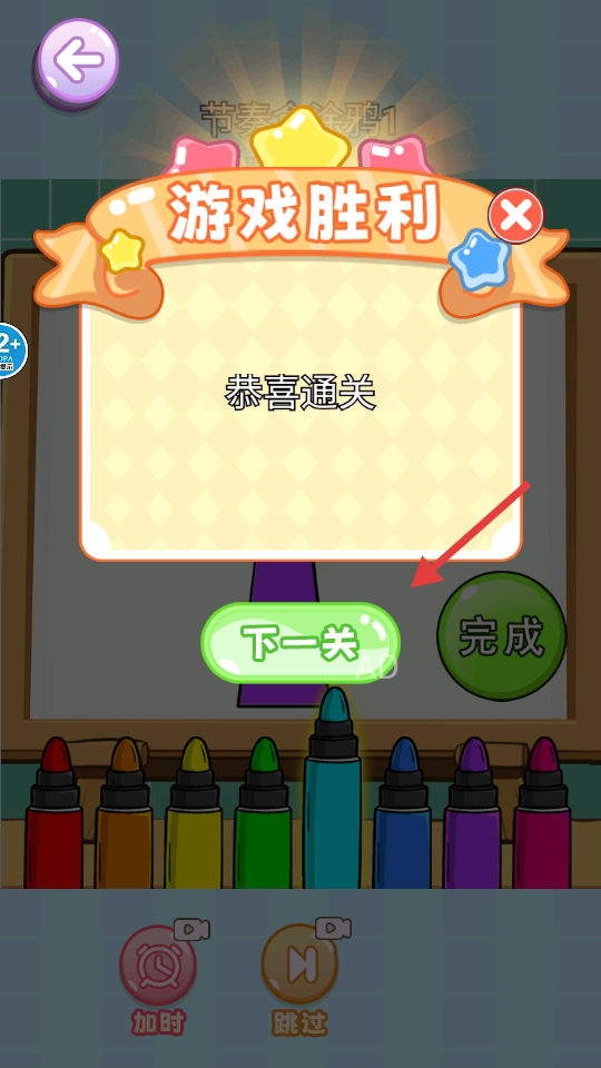 4、关卡通关后,点击【下一关】按钮即可进入游戏的下一个挑战关卡。