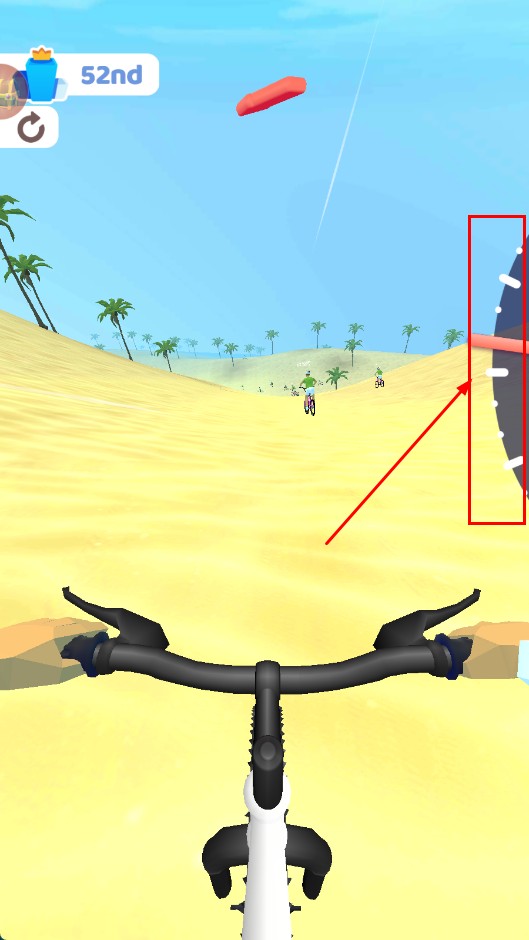 3、关注右侧速度表,把控骑行速度,在沙漠赛道上超越其他选手。