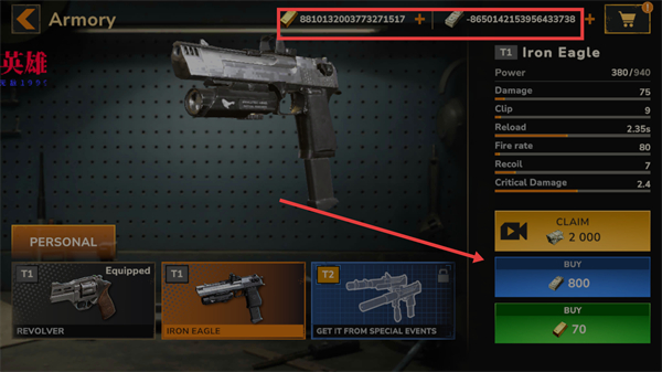 2、关注游戏中的货币数量,利用修改功能获取的资源,购买或升级武器,提升武器的威力、伤害等属性。