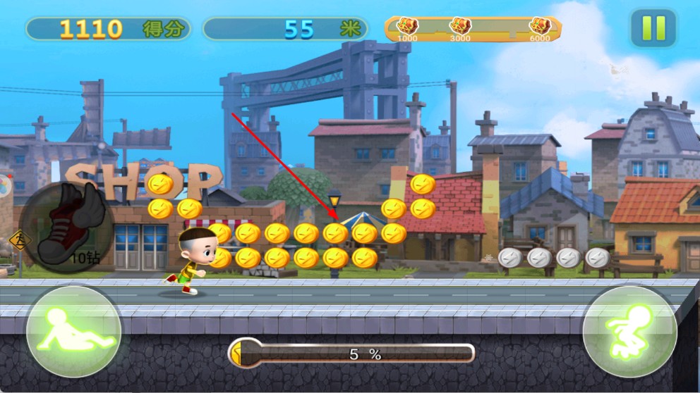 4、持续操控角色前进,尽可能多收集金币,积累得分,挑战更远距离。
