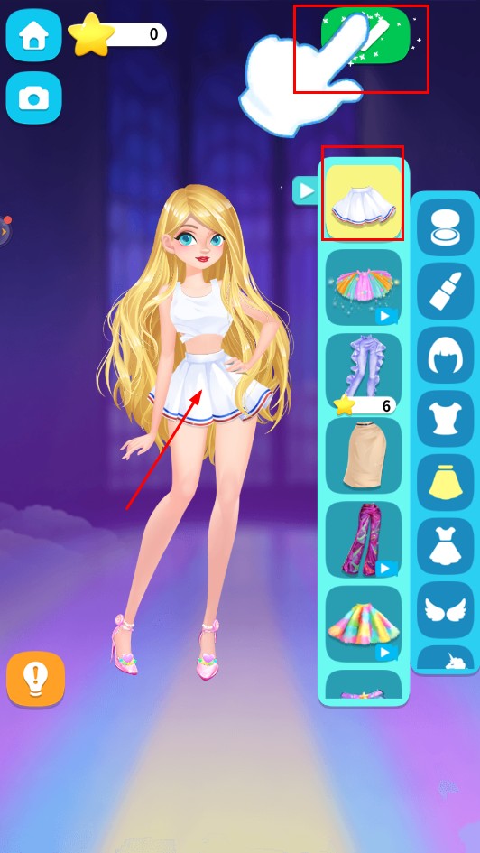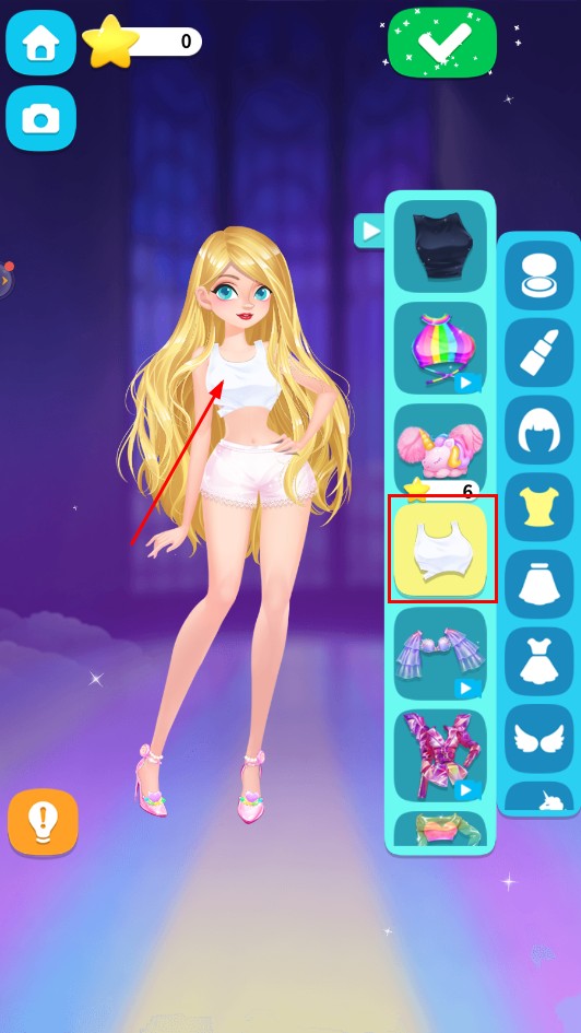 4、最后选择裙子样式,为角色更换裙子,完成装扮后点击对勾确认。