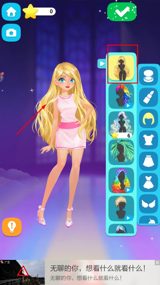 1、在装扮游戏界面,先选择右侧的发型样式,为角色更换发型。