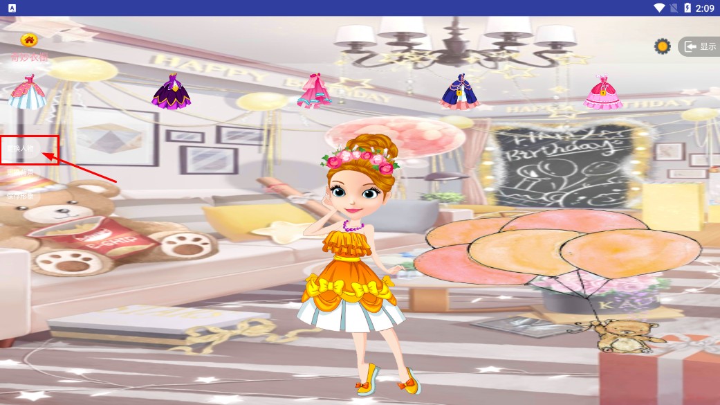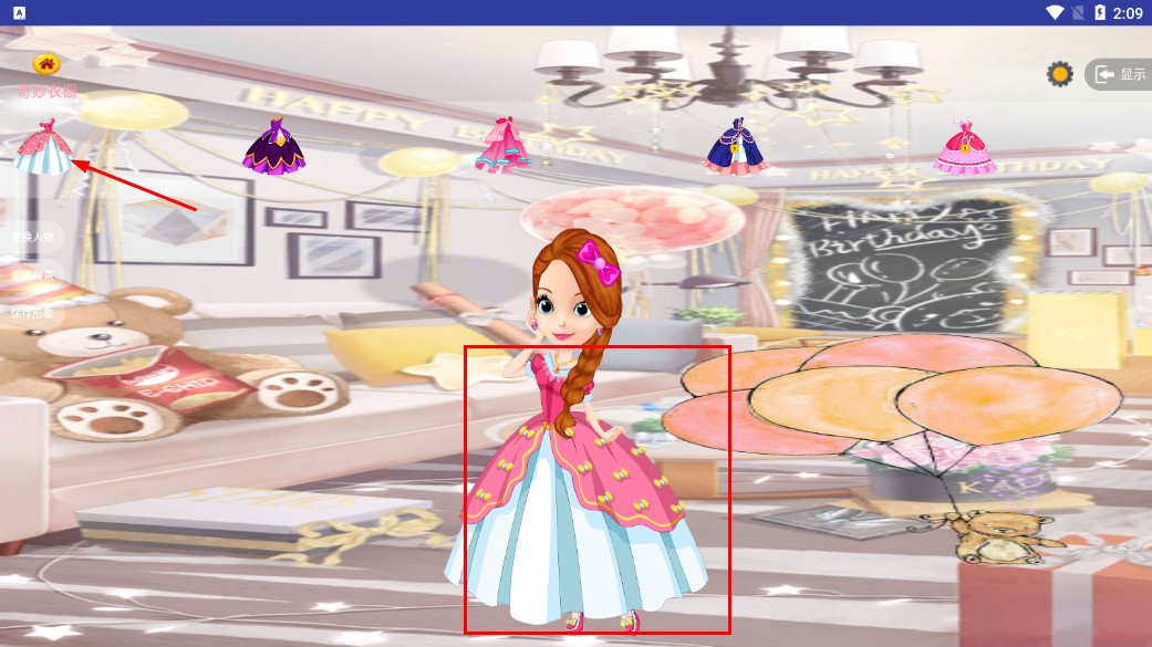 1、在游戏界面,点击左侧“奇妙衣橱”里的服装,为角色更换服饰。
