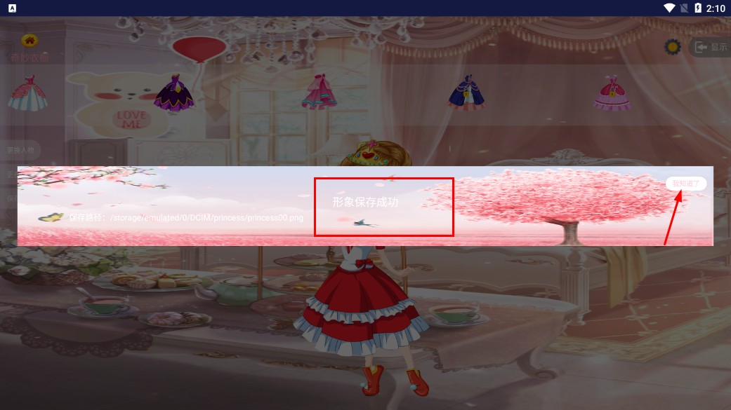 4、完成装扮后,点击“保存形象”,保存当前角色形象,保存成功后点击“我知道了”关闭提示。
