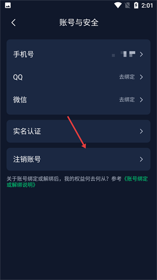 3、在“账号与安全”页面,点击“注销账号”选项。