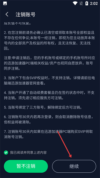 4、阅读注销相关规则,点击“继续”按钮推进注销流程。