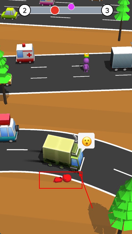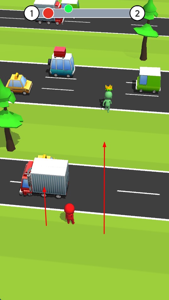 2、奔跑过程,注意观察道路上的车辆,找准时机,让角色安全穿过马路。