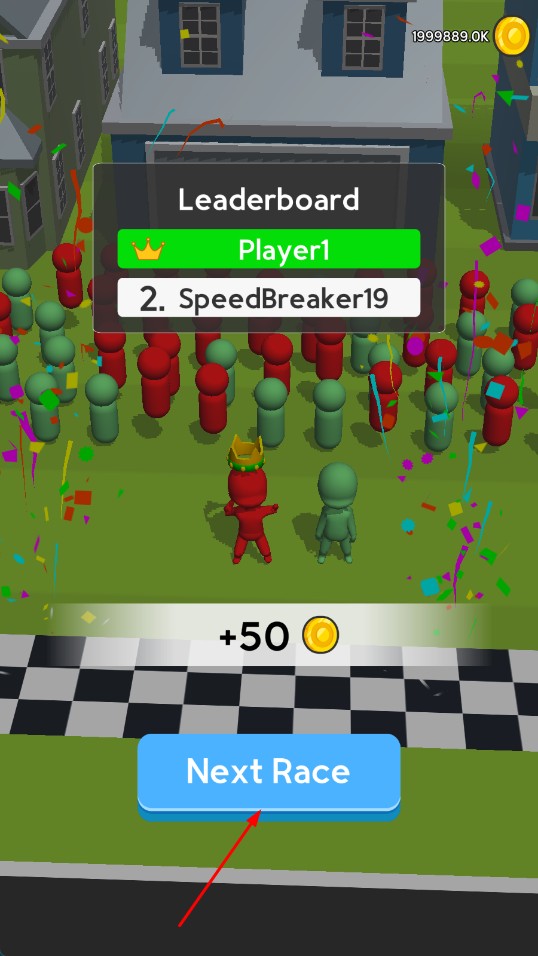 3、顺利到达终点后,可获得金币奖励,点击【Next-Race】按钮,继续下一场竞赛。