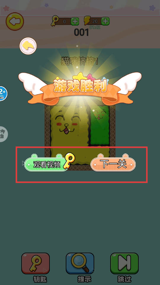 4、通关显示【游戏胜利】,点击【下一关】继续挑战,或观看视频得奖励。