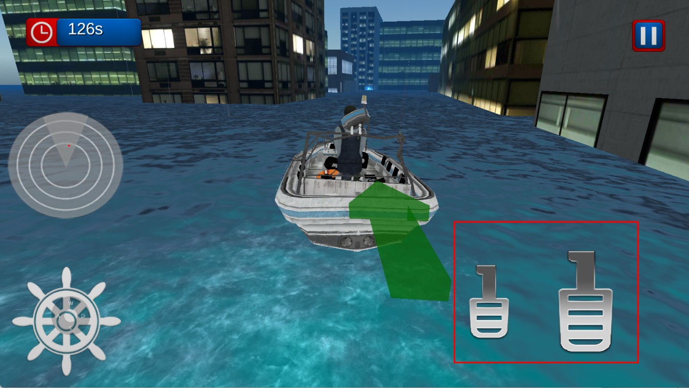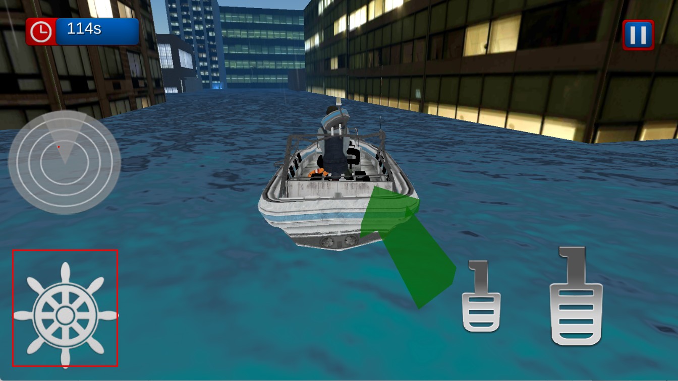 4、通过左侧船舵按键,控制船只转向,灵活调整行驶方向,在水域上航行。