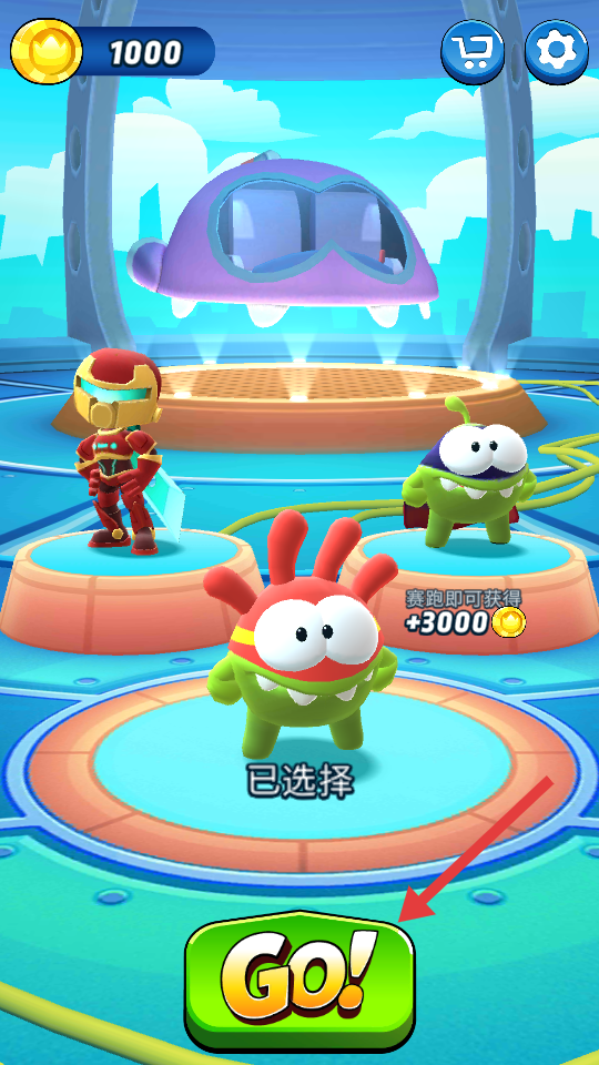1、选择红色绿身的卡通角色,点击绿色【GO!】按钮,进入跑酷关卡。