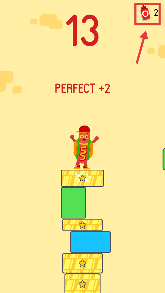 3、连续精准落在方块上,右上角可以查看酱料道具数量。