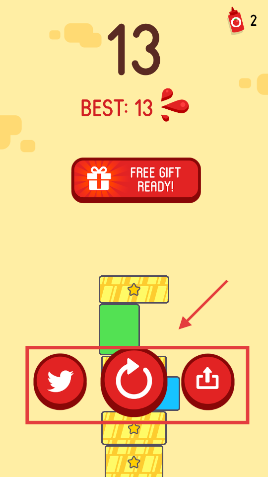 4、游戏结束后,可查看最佳成绩(BEST),也能选择重新挑战、分享或领取免费礼物。