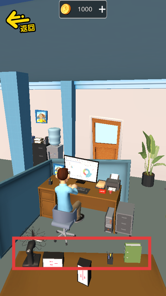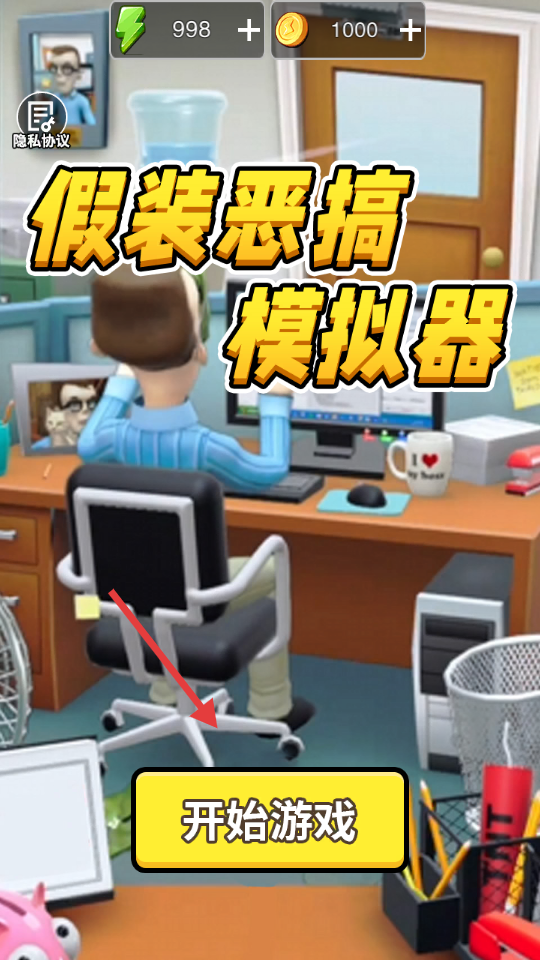 1、基础开局操作:点击“开始游戏”即可进入办公室整蛊挑战,无需复杂前置步骤,进入场景后,画面下方桌子上会显示可使用的道具。