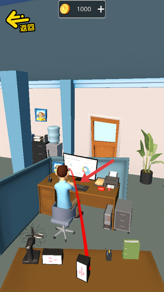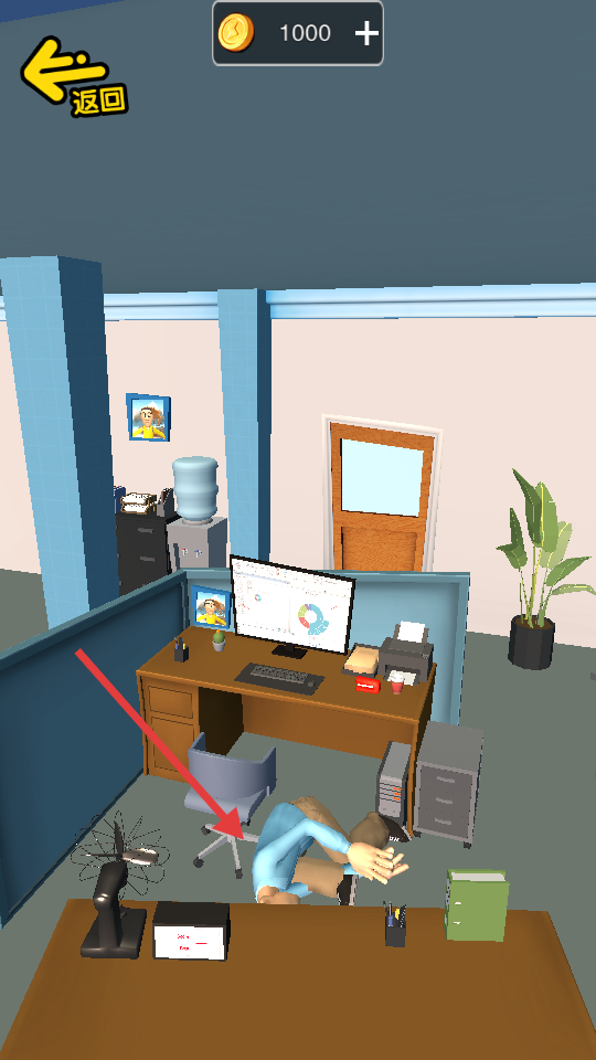 3、瞄准办公的角色,使用道具进行互动,触发恶搞效果。