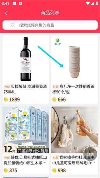3、在商品列表里,找到喜欢的【意几净一次性稻香茶杯】,点击进入商品详情页。
