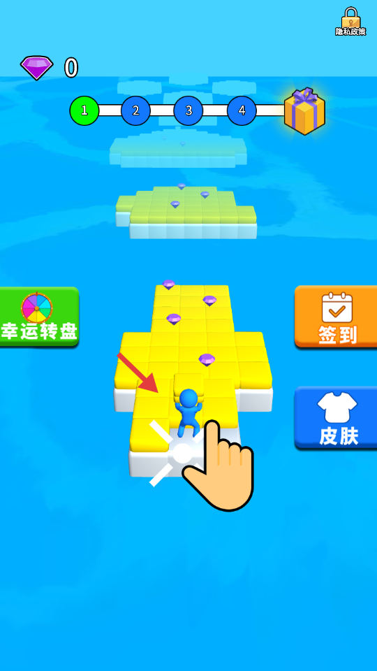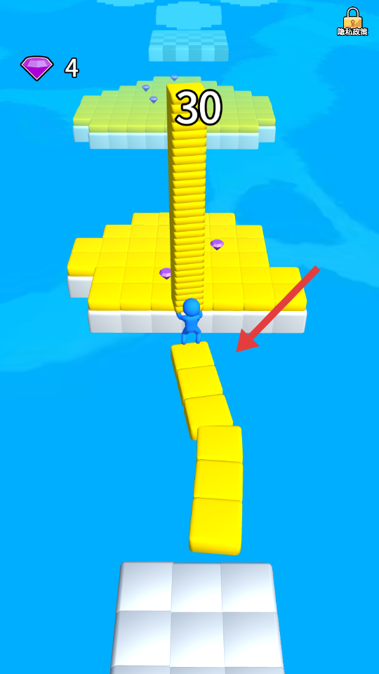 2、搭建黄色方块路径,持续收集。