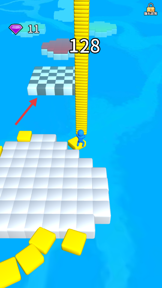 3、沿搭建路径向黑白格子终点平台移动。